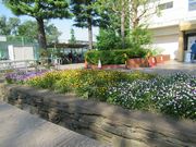 図書館前の風景。花と手入れして下さる方のお気持ちも素敵